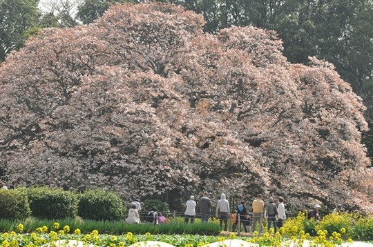 昨日の歌番組で森山直太朗が印西吉高の大桜の前で、持ち歌「さくら」をライブで歌って …
