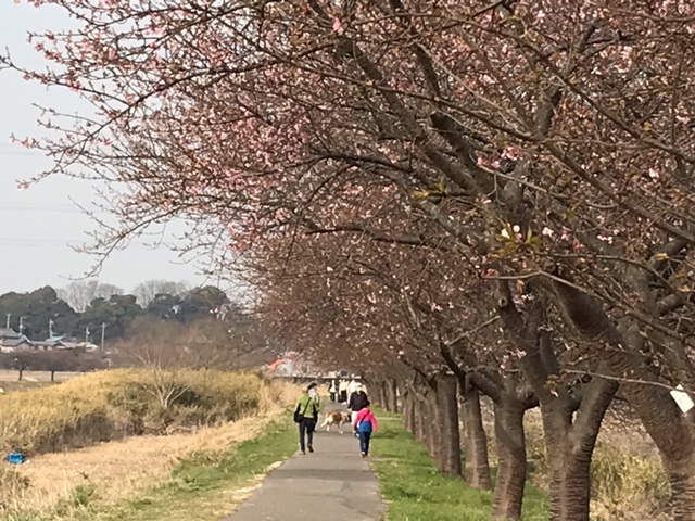 「道の駅やちよ」の新川北側は河津桜で知られています。土日が暖かかったので、もう河 …