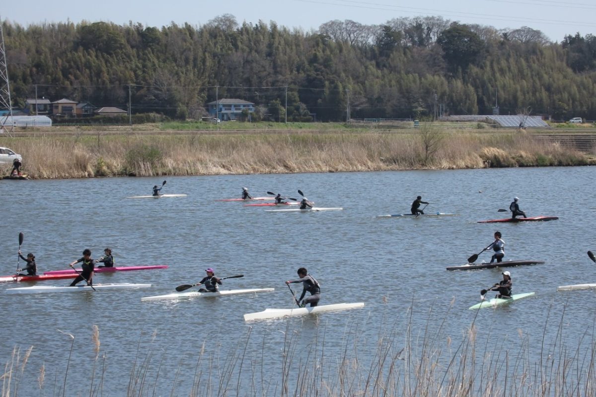 (K.K) 昨日(3月31日)ふるさと広場の鹿島川を多くのカヤックが風の中、パド …