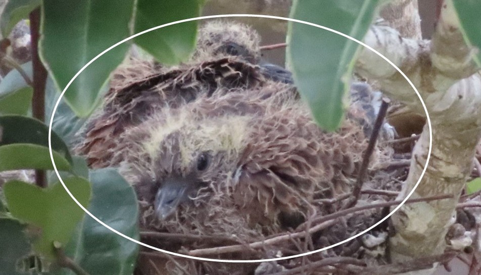 (K.K) 今日(17日)キジバトの雛が誕生していました(写真は少し分かりにくい …