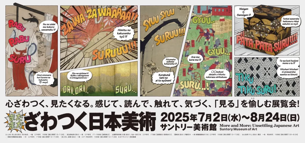 (T.O) サントリー美術館(東京・六本木)で「まだまだざわつく日本美術(More and More: Unsettling Japanese Art)」が開催されており、入口には展覧会のポスターが掲示されています。