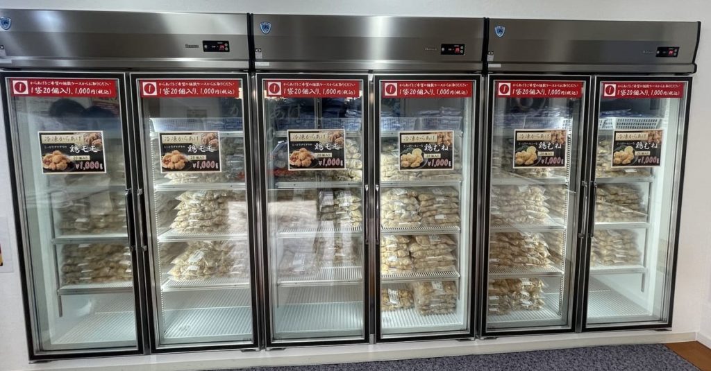 からあげ無人直売所の中には大きい冷凍庫が並んでいます。