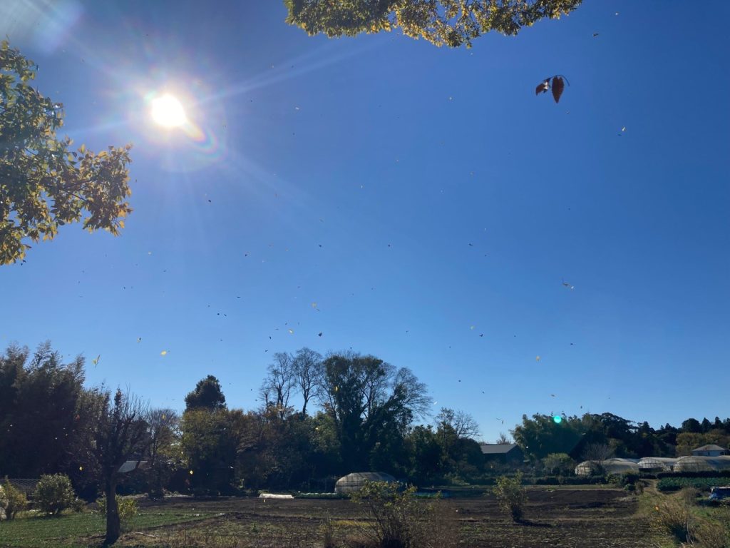 台地の江原新田では地平線とまでは言えませんが見渡す限りの青空。