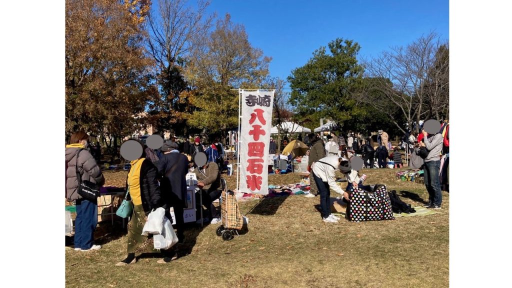 そして、日曜日の染井野七井戸公園では寺崎ブランド米販売促進のノボリも見かけ、