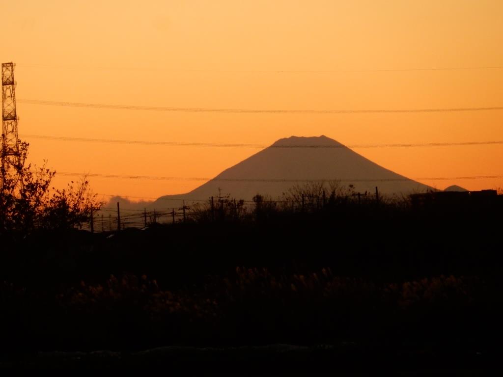 本日(12月13日)夕方、病院通院や畑作業によく利用している染井野から江原台に抜ける農道で、富士山を撮影しました。